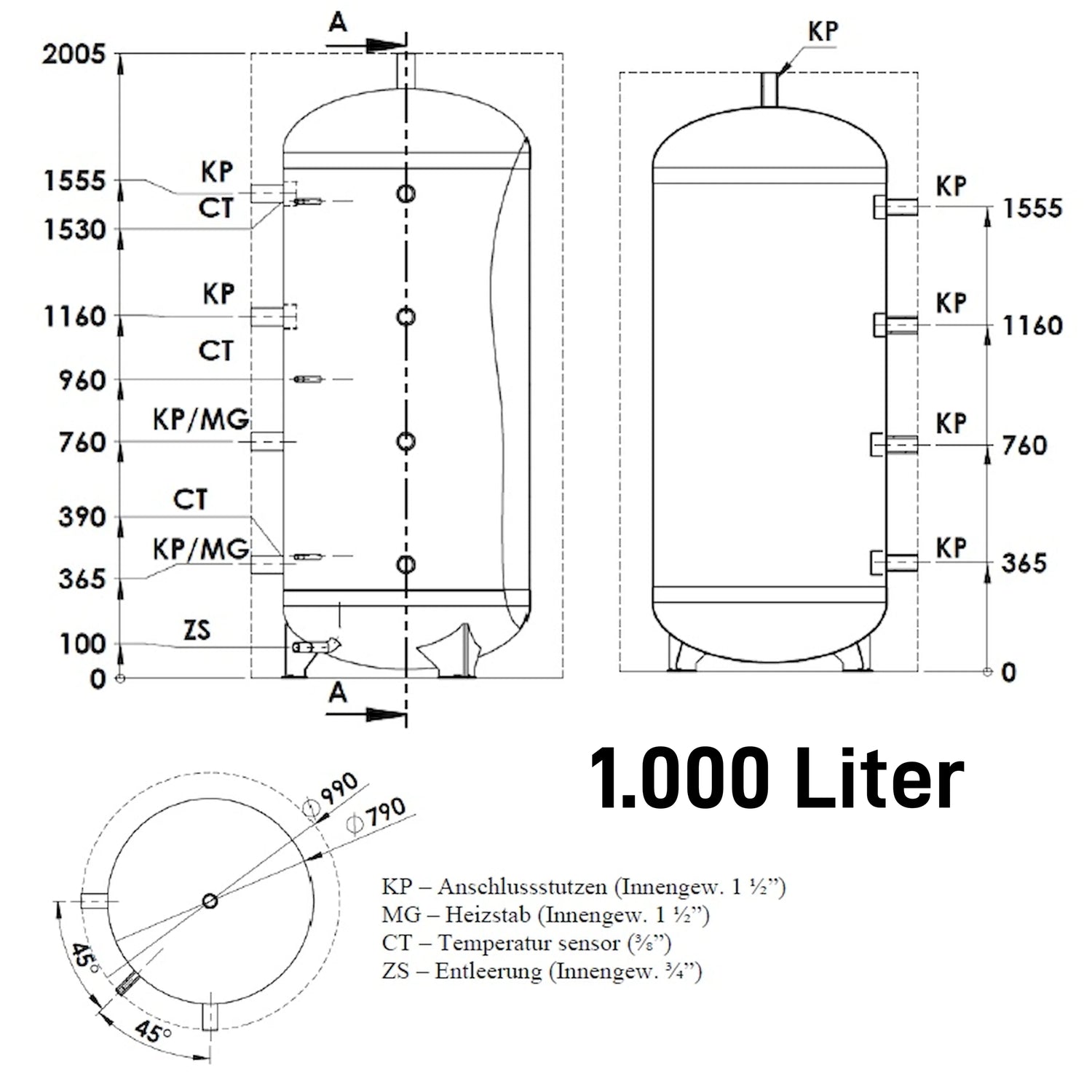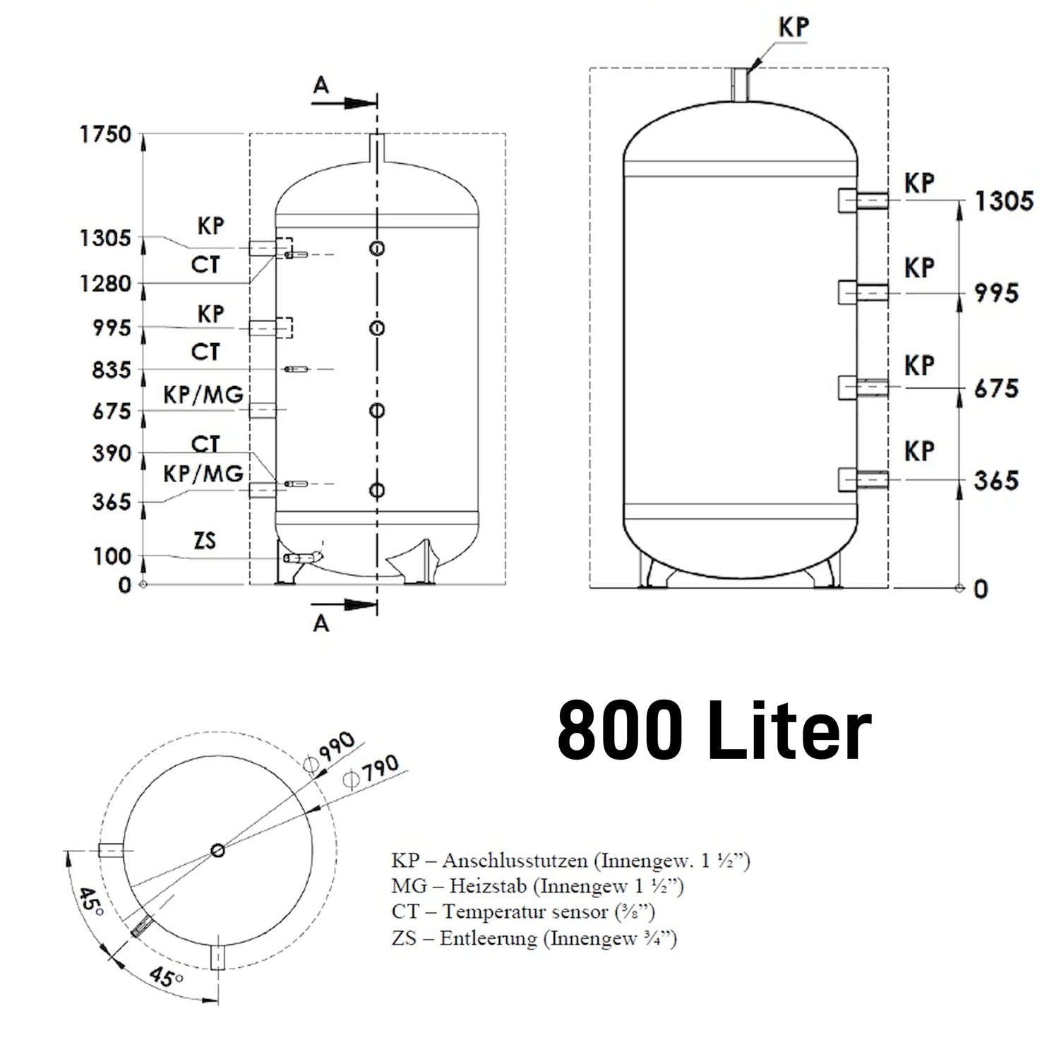 Vytápěcí paměť topné voda pufru - 800 litrů je skladem a bude odeslán, jakmile bude opět dostupný