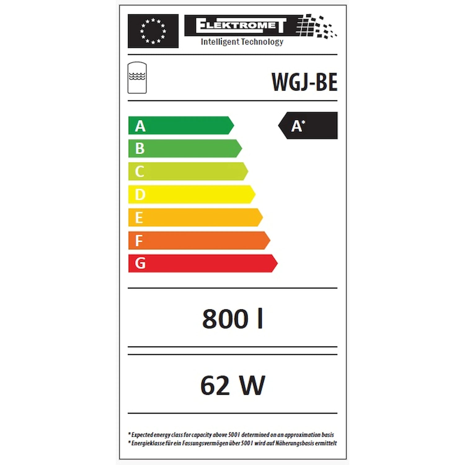 WGJ-BE 800: Objem zásobníku cca 710 l, ztráty v klidovém stavu cca 62 W, hmotnost ~143 kg. WGJ-BE 1000: Objem zásobníku cca 830 l, ztráty v klidovém stavu cca 71 W, hmotnost ~160 kg. Maximální provozní tlak: 0,3 MPa; Maximální provozní teplota: 80 °C.