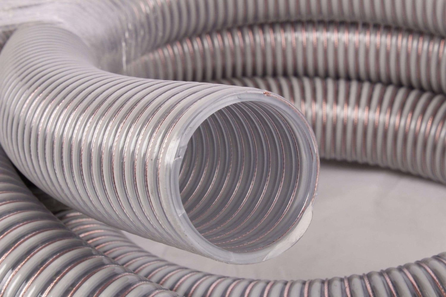 Ο σωλήνας είναι αντιστατικός και κατασκευασμένος από PVC με ενσωματωμένη άκαμπτη σπείρα PVC και ενσωματωμένα χάλκινα νήματα. Δώστε ιδιαίτερη προσοχή στη γείωση και στις δύο πλευρές.