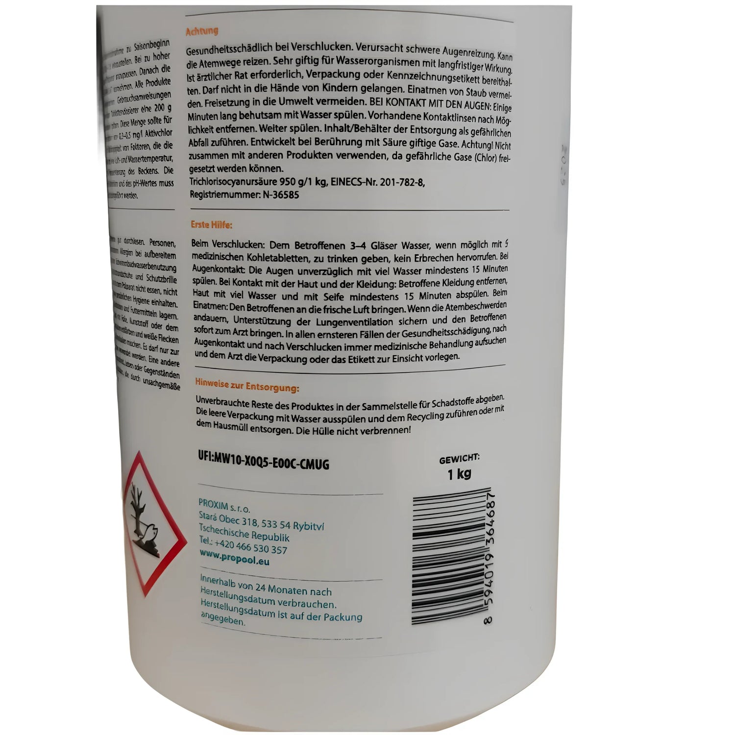 To ensure optimal effectiveness, we recommend regularly checking the active chlorine concentration and pH level in the pool water. Factors such as air and water temperature, sunlight intensity, and pool load can affect chemical levels and should therefore be monitored regularly.