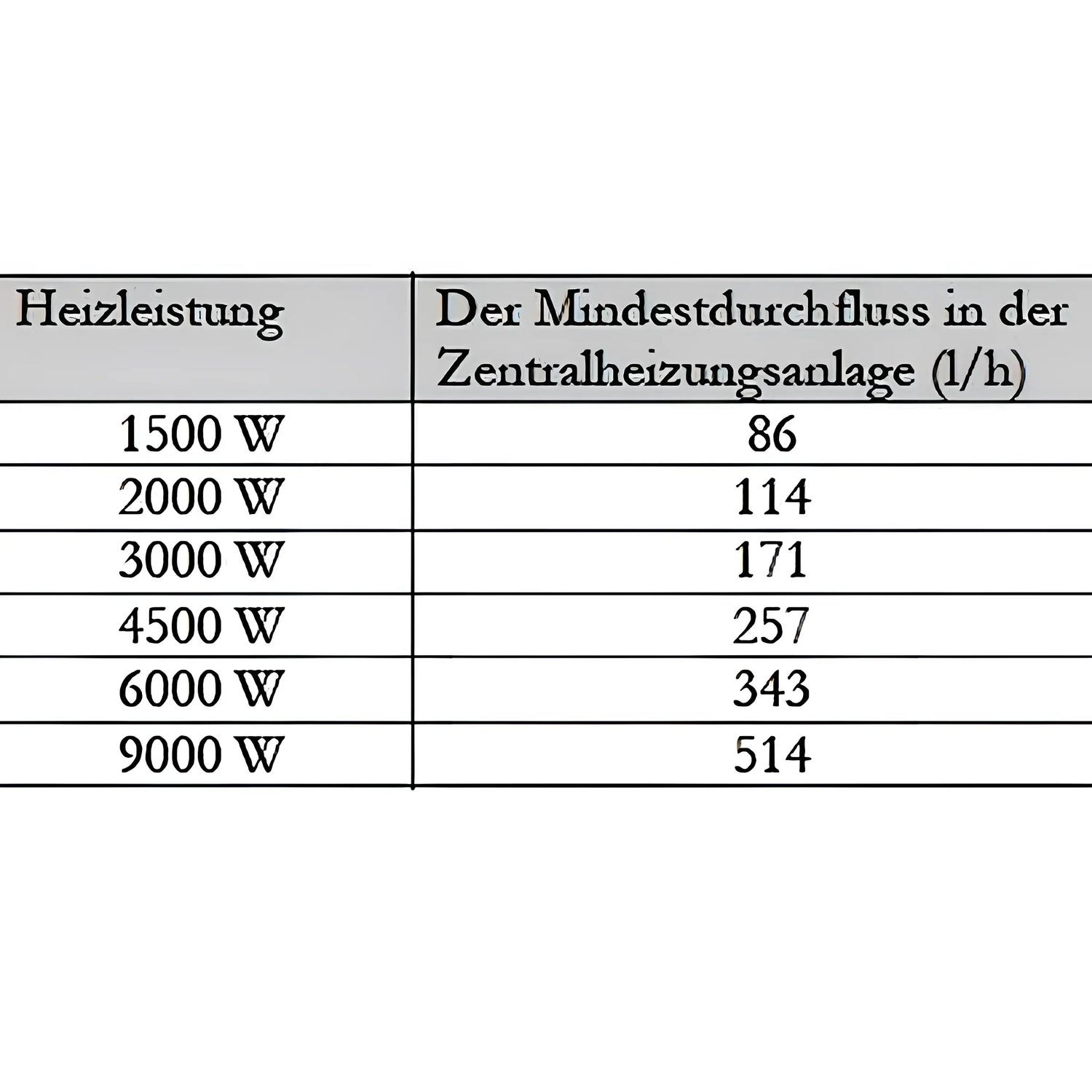 The instantaneous water heater for central heating systems has precise connection options: The flow and return connection measures 1 1/4" IG, while the connection for the heating element is set to 1 1/2" IG. It reaches a maximum permissible operating temperature of 90 °C and operates safely up to an operating pressure of 10 bar.