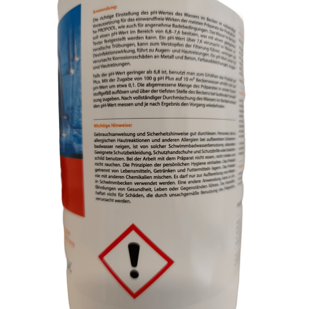 Siga siempre las instrucciones de uso y nunca mezcle pH plus gránulos con otros productos químicos. Este producto está diseñado exclusivamente para el tratamiento del agua de piscinas y el fabricante no se responsabiliza de los daños causados ​​por un uso inadecuado.