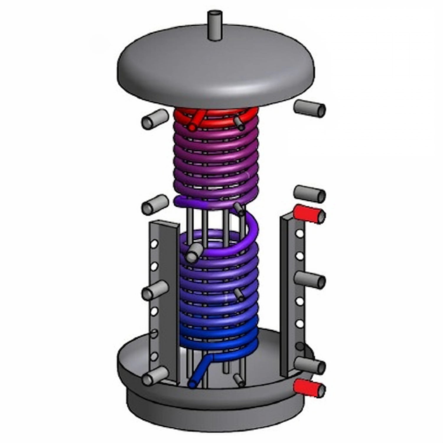 Vandens akumuliacinė talpykla pagaminta iš S235JRG2 kokybės plieno pagal DIN 4753 ir Europos standartą EN 12897, su neapdorotu vidumi ir gruntuotu išoriniu sluoksniu. Apvyniotas geriamojo vandens šilumokaitis pagamintas iš aukštos kokybės 1.4404 gofruoto nerūdijančio plieno vamzdžio, pagaminto Vokietijoje, pasižyminčio dideliu paviršiaus plotu, užtikrinančiu didelę karšto vandens gamybą.