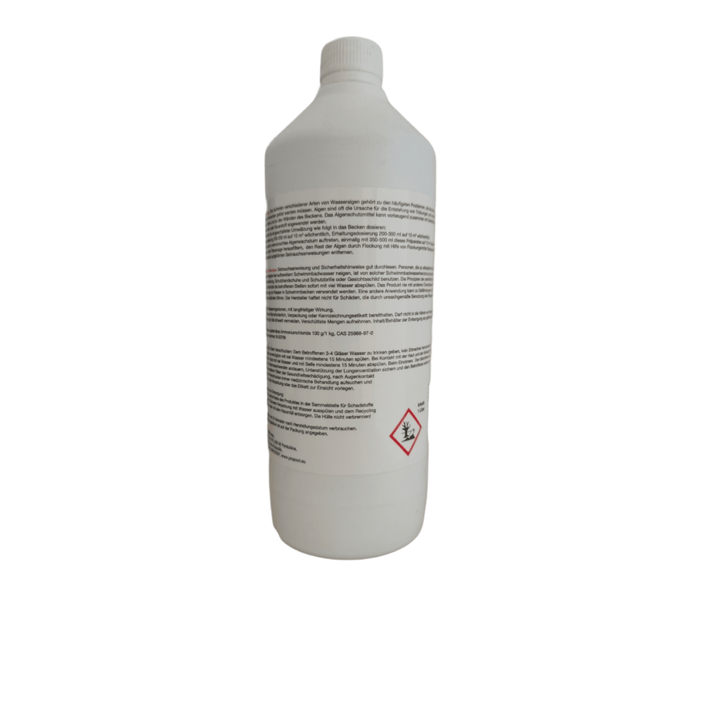 Aļģu kontrole droši iznīcina visu veidu baseina aļģes un to var viegli kombinēt ar aktīvā hlora un skābekļa produktiem. Tas rada efektīvu vidi, kas palēnina kaitīgo baktēriju augšanu, tādējādi veicinot ilgtermiņa tīru un higiēnisku baseina ūdeni.