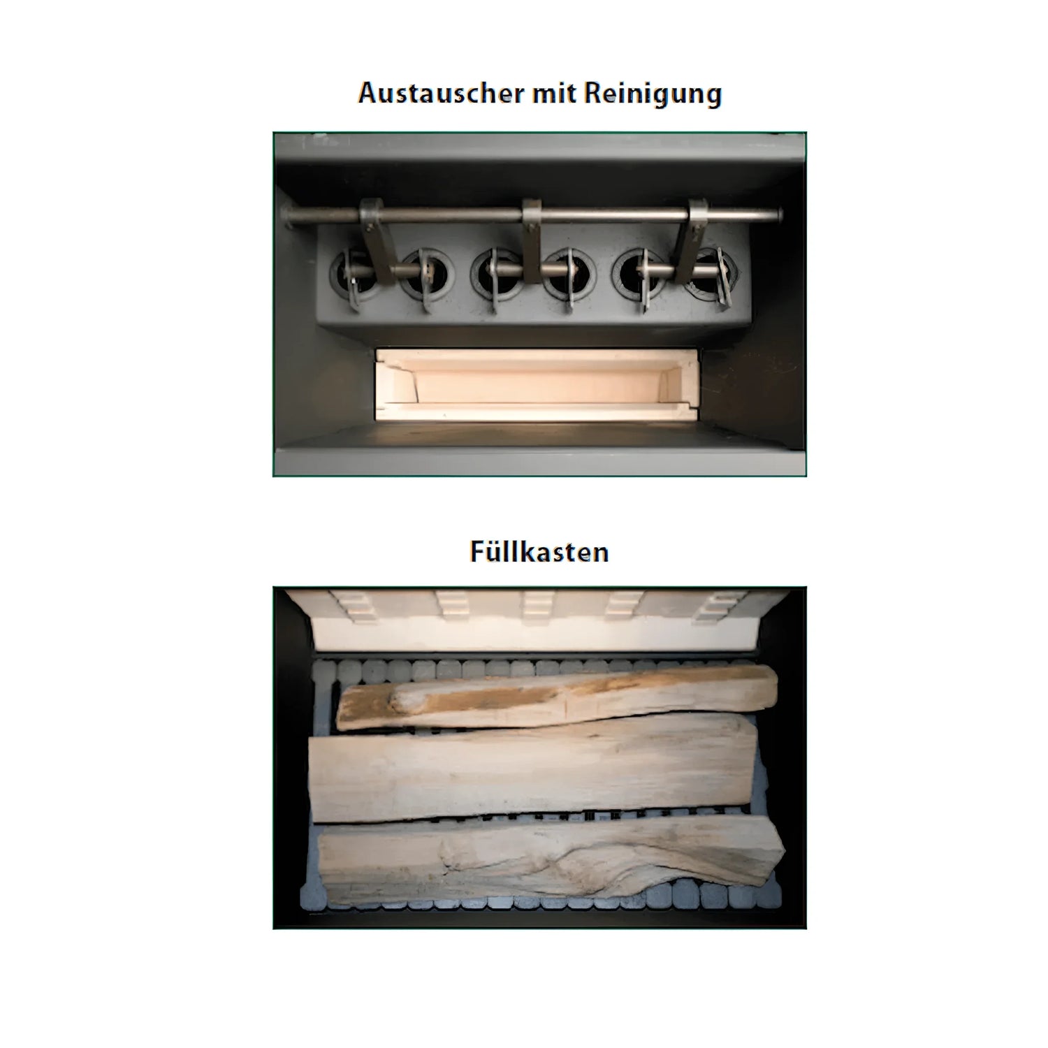 • Ten górne obciążenie komory spalania umożliwia szybkie i wygodne uzupełnianie paliwa poprzez otwierane górne drzwi załadunkowe.