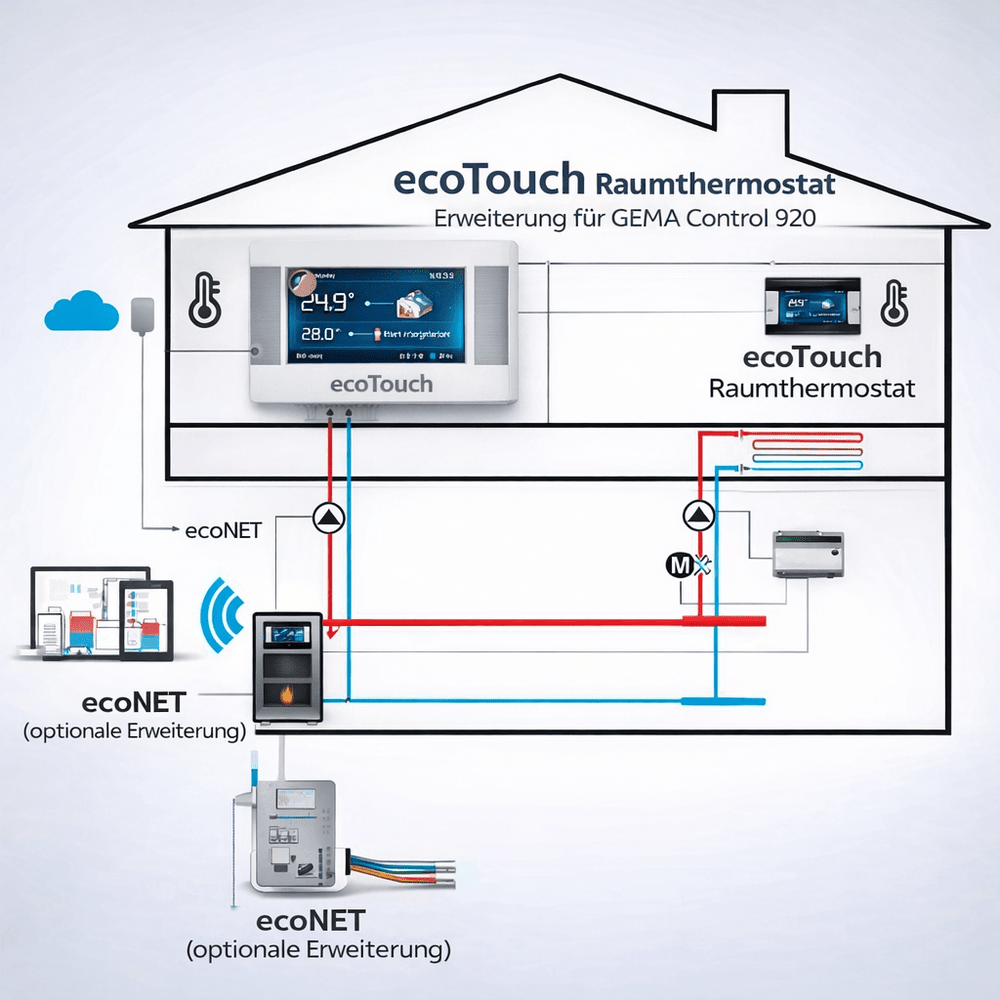 System sterowania ogrzewaniem Gema Control 920 (Ecomax) z regulacją pogodową łączy w sobie najnowocześniejszą technologię z łatwością obsługi i zrównoważonym rozwojem. To innowacyjne urządzenie sprzedało się w ponad 700 egzemplarzach i od ponad sześciu lat zachwyca klientów swoją niezawodnością i funkcjonalnością. Dzięki technologii ekranu dotykowego, system sterowania jest intuicyjny w obsłudze i oferuje wszechstronne możliwości personalizacji krzywych grzewczych, przedziałów czasowych i temperatur. Gema Control 920 obsługuje również integrację systemów solarnych i sterowanie wieloma źródłami ciepła.