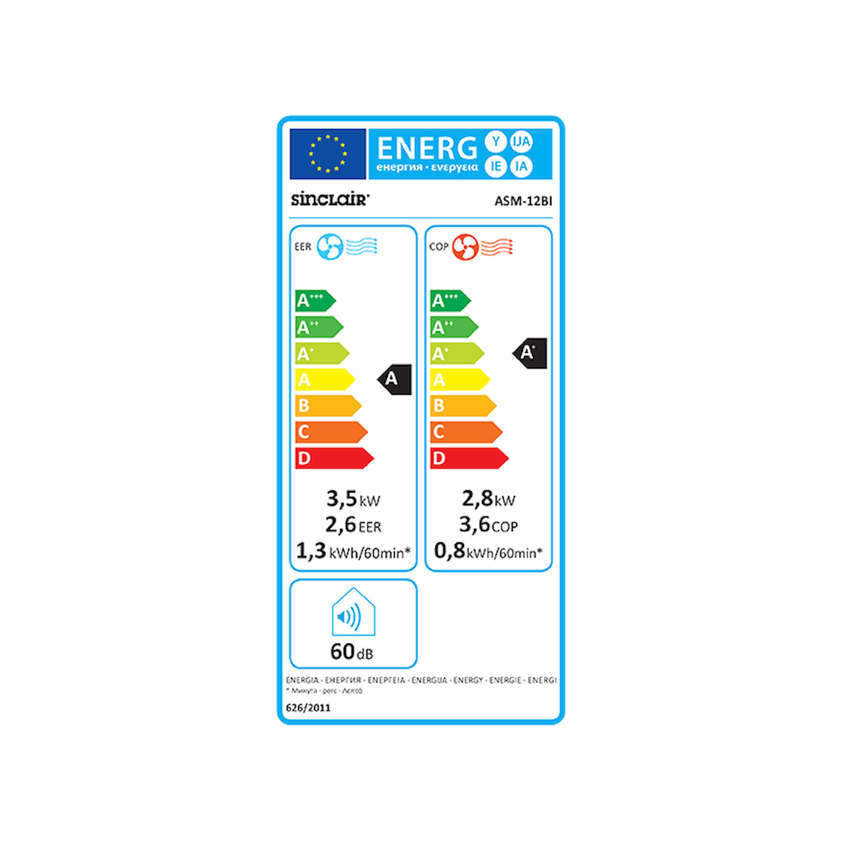- Energieffektivitetsklasse køling/opvarmning: A/A+