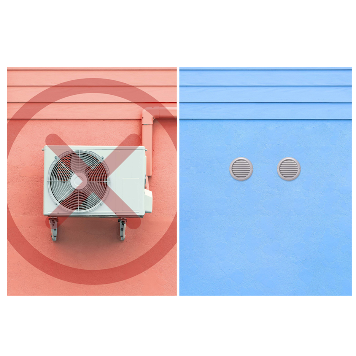 Udviklet som Monoblok-løsning, systemet kræver ikke en separat udendørs enhed, Dette forenkler installationen og sparer plads. Den har en attraktiv metalfinish, der garanterer både stabilitet og et moderne udseende.