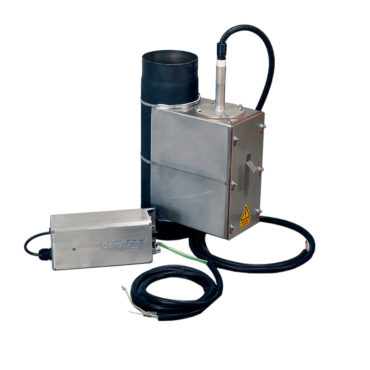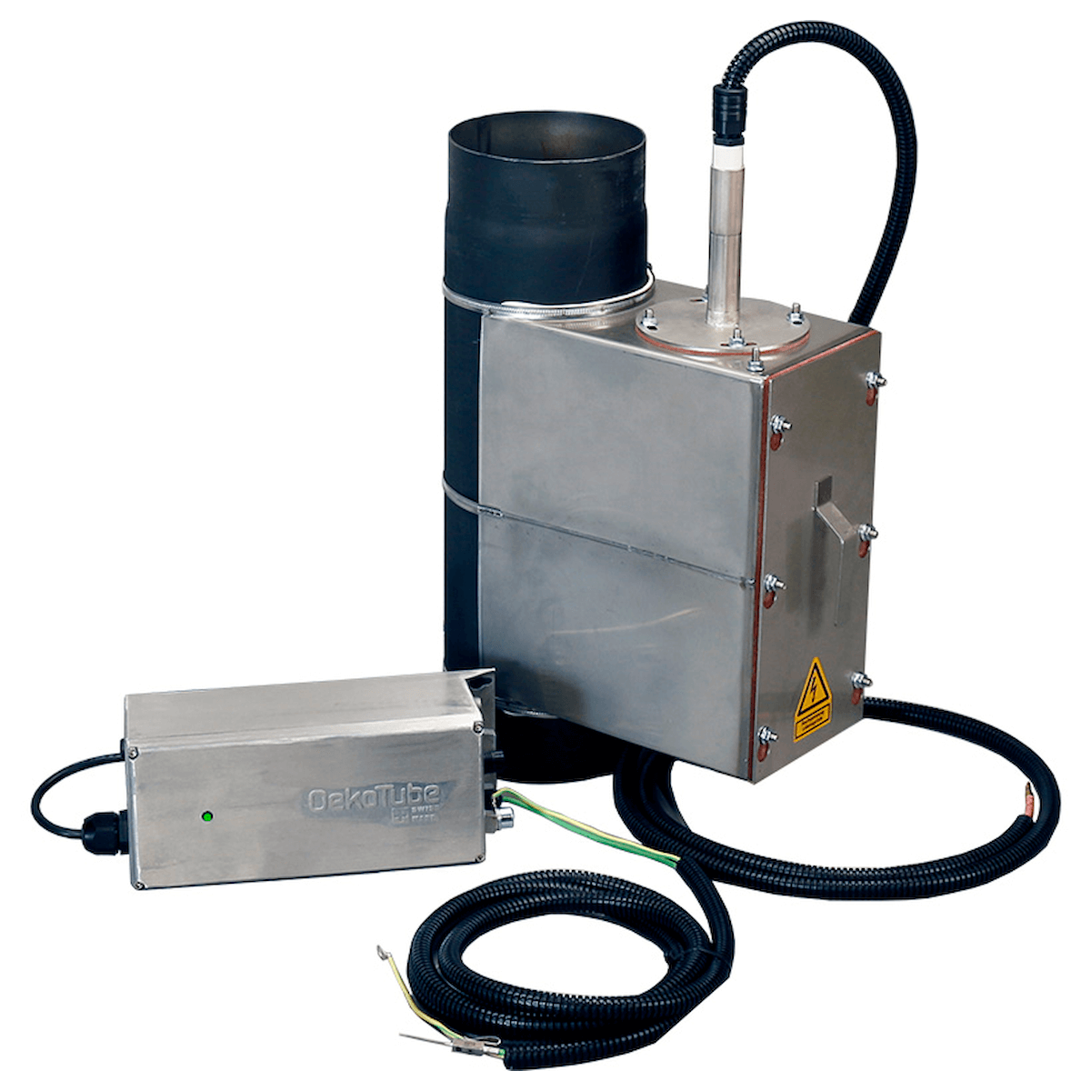 OekoTube-Inside er en elektrostatisk partikeludskiller, der er specielt designet til brændefyrede kedler op til 100 kW. Den installeres nemt i kedelrummet mellem kedlen og skorstenens indløb og sikrer en mærkbar reduktion af partikeludledning.
