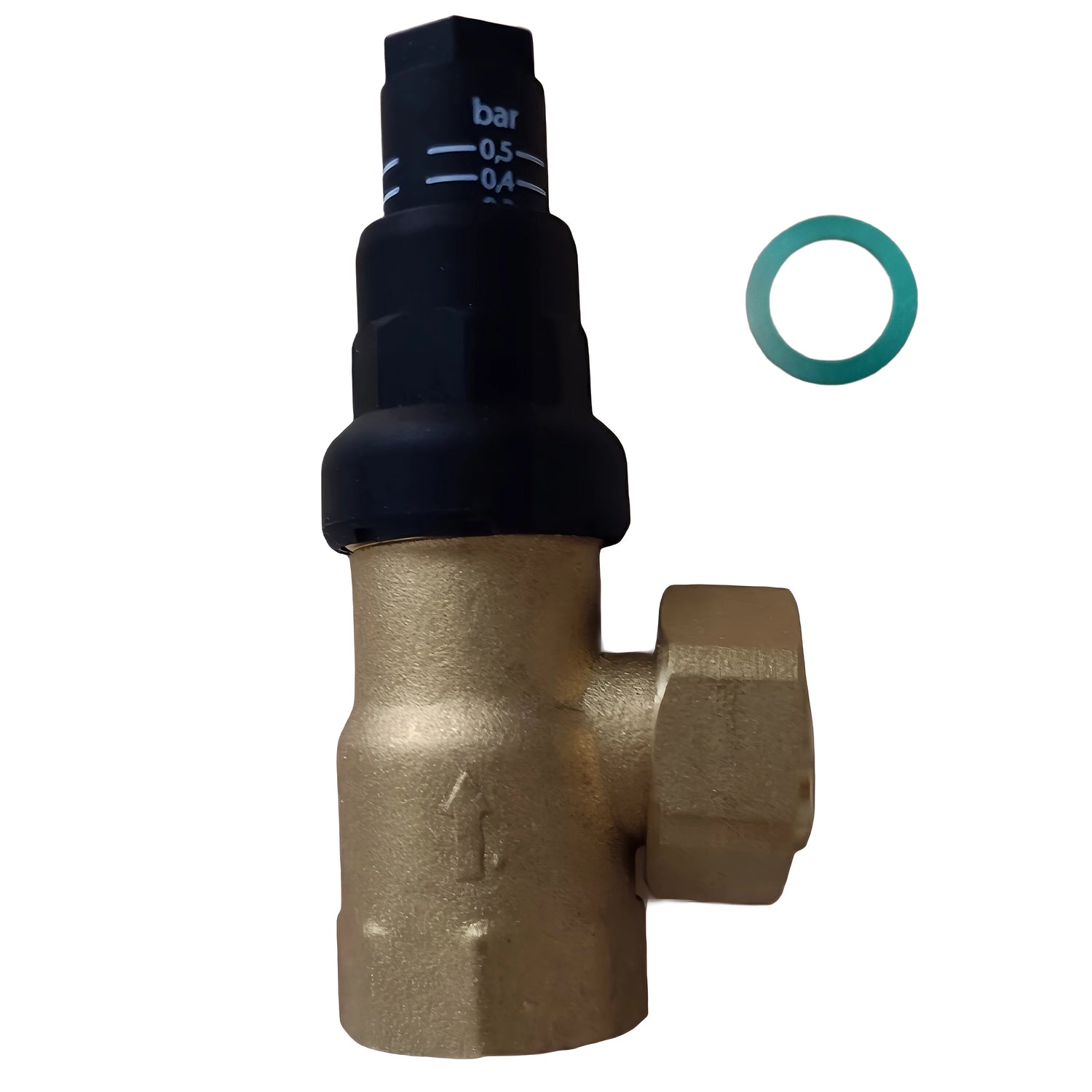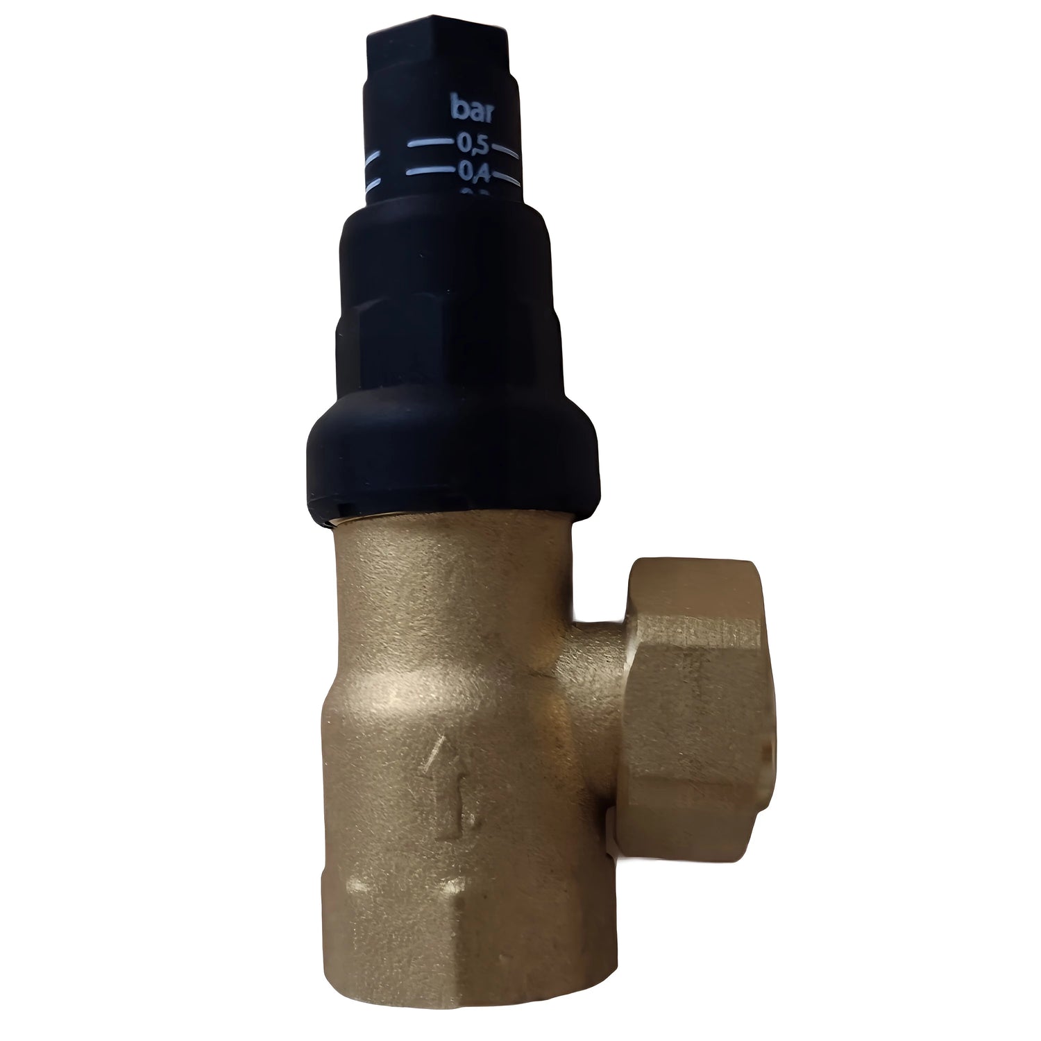 Dostupné v priamom alebo priestorovo úspornom rohovom prevedení; pripojenia: vstup s vnútorným závitom G¾, výstup s plochým tesnením a prevlečnou maticou G¾. Nastaviteľný tlak je plynule nastaviteľný medzi 0,1 a 0,5 baru.