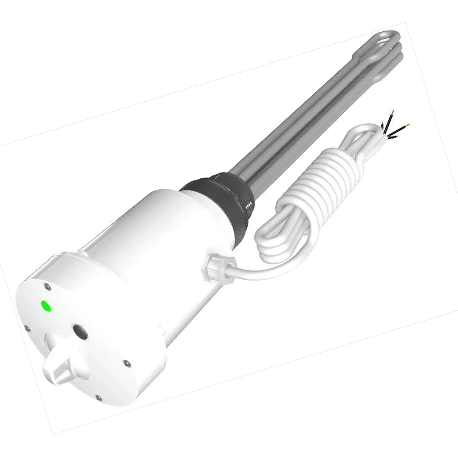 Det medföljande elektriska värmeelementet, tillverkat av högkvalitativt rostfritt stål, erbjuder en värmeeffekt på 3 kW och ett justerbart temperaturområde från 5 °C till 75 °C. En integrerad termostat med tillslagshysteres och en säkerhetstemperaturbegränsare på 93 °C säkerställer tillförlitlig drift. IPX4-skyddsklassen möjliggör användning även i fuktiga miljöer.