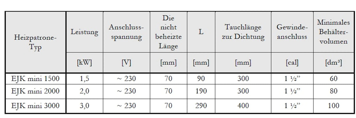 Värmeelementet har en anslutning med 1 1/2" Den har utvändig gänga (AG) och passar i vanliga varmvattenberedare och dricksvattenberedare. Tack vare sin kompakta installationslängd på 300 mm och en ouppvärmd längd på 70 mm kan värmepatronen integreras snabbt och enkelt. Den medföljande 1,5 meter långa anslutningskabeln med Schuko-kontakt garanterar en enkel och direkt strömförsörjning.